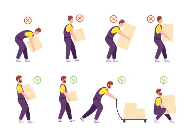 Tulang punggung harus tegak ketika mengangkat beban. Tekuk lutut dan angkat beban dengan posisi tangan sedekat mungkin dengan tubuh. Pijakan kaki dengan stabil agar berat beban juga dapat diserap oleh otot kaki.