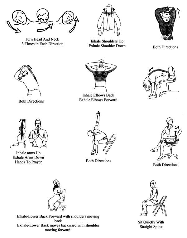 Team HSE menganjurkan kepada pekerja kantor untuk melakukan peregangan ringan untuk mempertahankan kelancaran aliran darah. Pernyataan ini juga sejalan dengan hasil riset yang dilakukan di Italia yang menyatakan bahwa peregangan otot yang dilakukan secara rutin terbutkti bisa menurunkan kasus sakit kepala yang dialami oleh karyawan kantor.